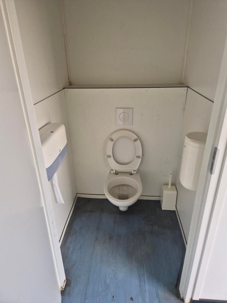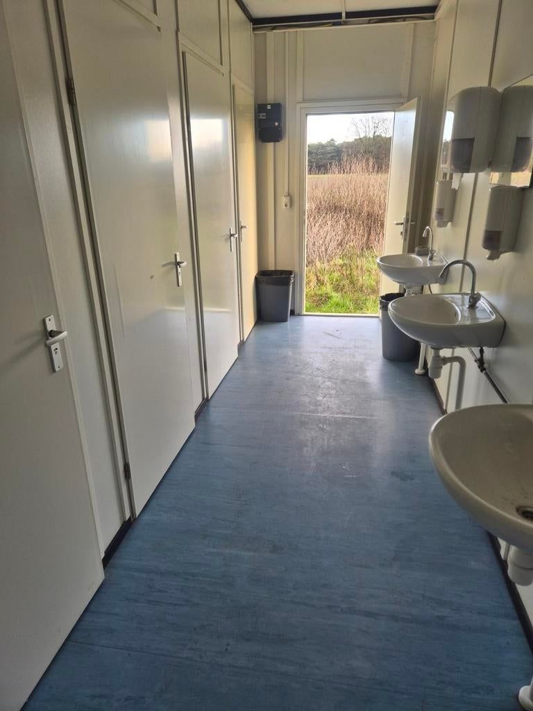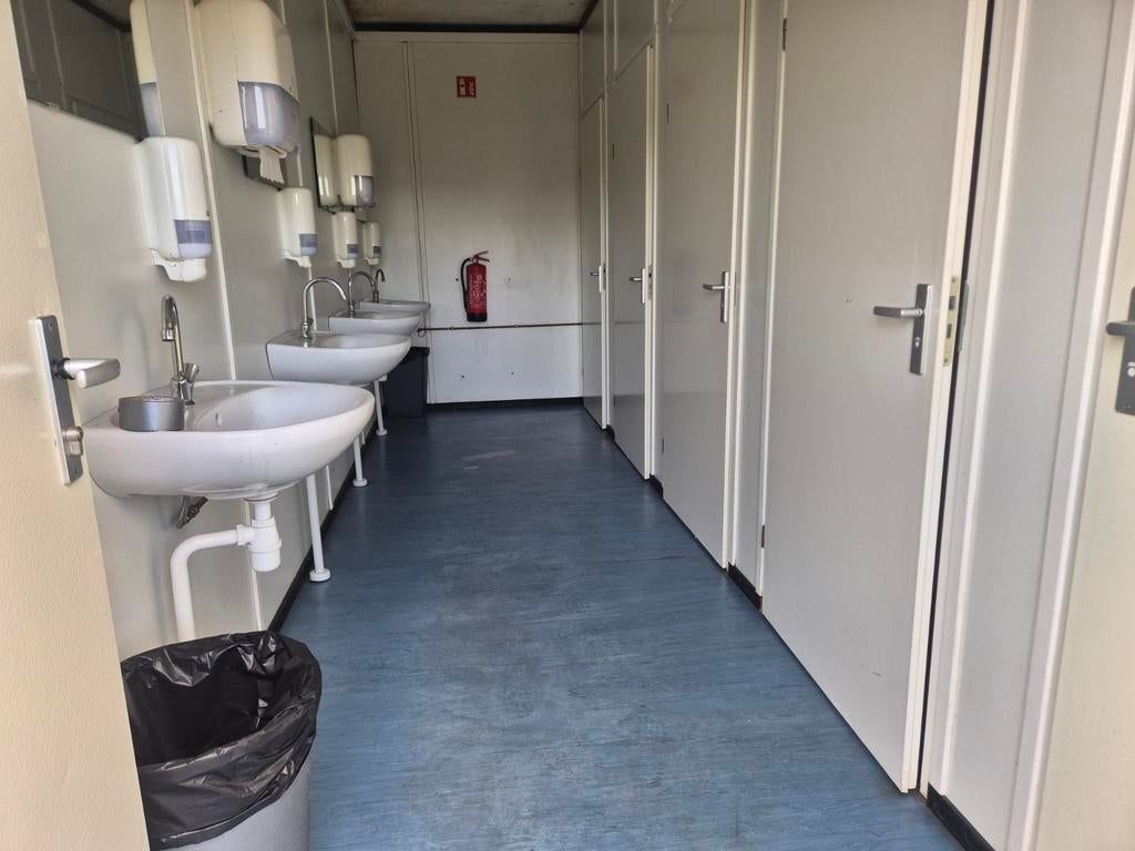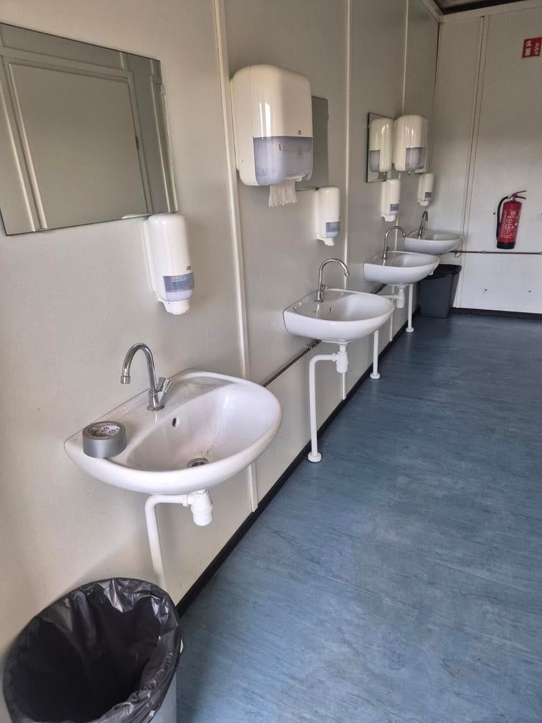 Te koop: complete sanitairunit, ideaal voor evenementen, bouwplaatsen of tijdelijke voorzieningen. Deze unit is uitgerust met 5 toiletten en 4 wasbakken, wat zorgt voor voldoende capaciteit. Voorzien van elektrische verwarming en ventilatie voor optimaal comfort in alle seizoenen. De unit is direct klaar voor gebruik.