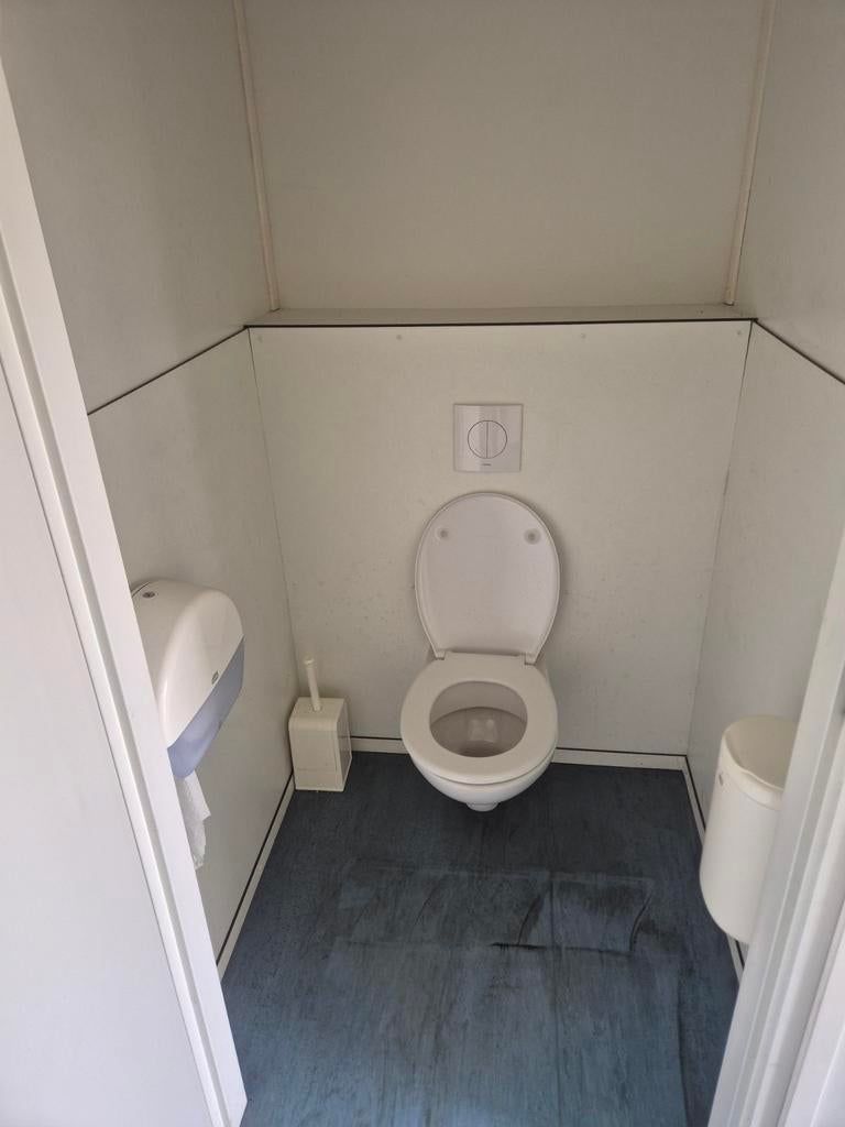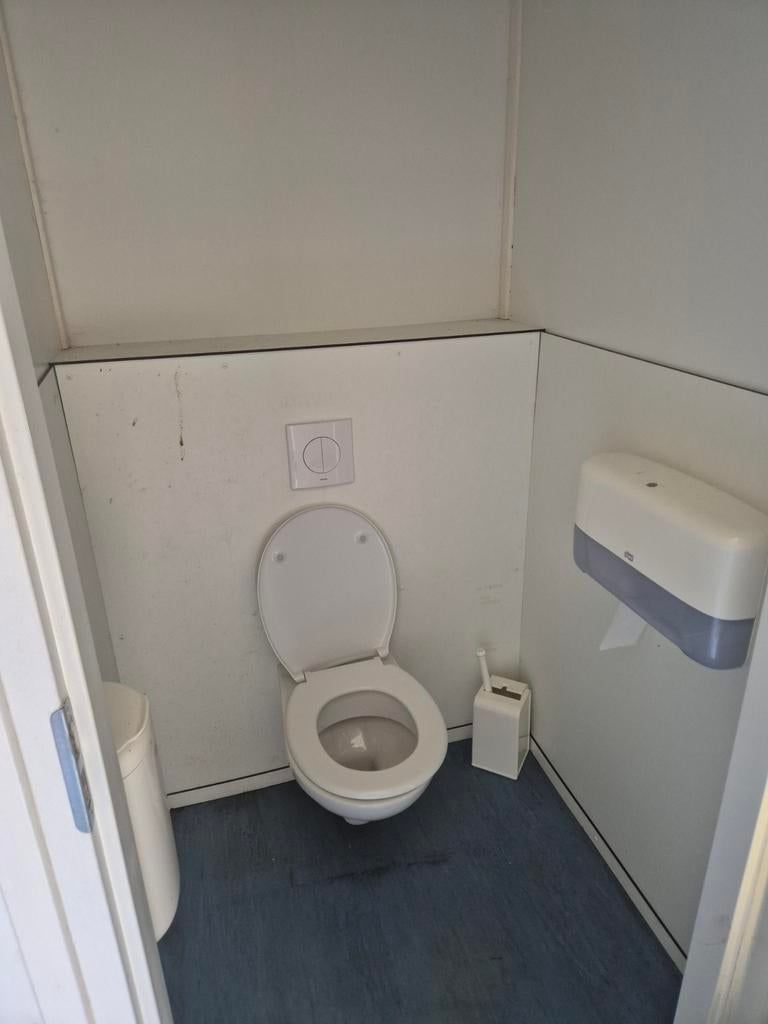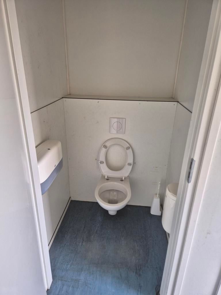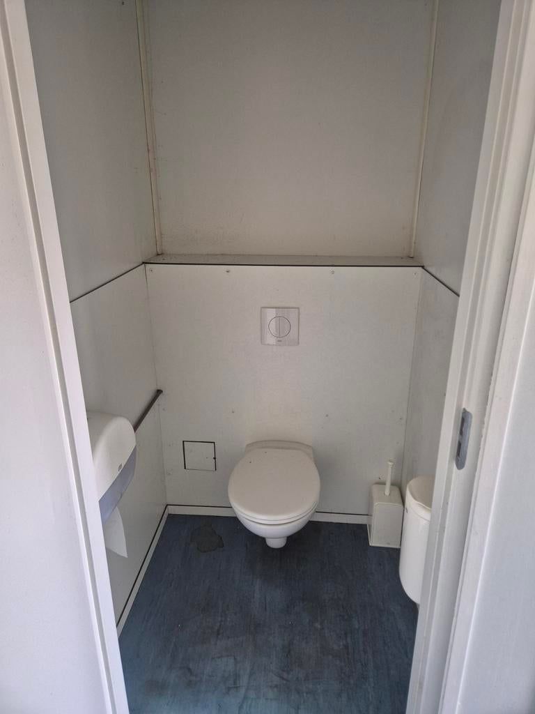 Te koop: complete sanitairunit, ideaal voor evenementen, bouwplaatsen of tijdelijke voorzieningen. Deze unit is uitgerust met 5 toiletten en 4 wasbakken, wat zorgt voor voldoende capaciteit. Voorzien van elektrische verwarming en ventilatie voor optimaal comfort in alle seizoenen. De unit is direct klaar voor gebruik.