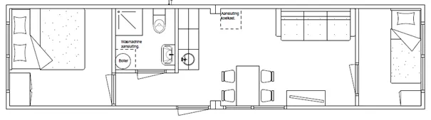 Woonunit te huur: 3x12m met 2 slaapkamers en moderne voorzieningen.